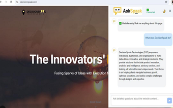 AskSpaak, Chrome tarayıcısı için tasarlanmış bir eklentidir. Bu ücretsiz araç, kullanıcıların gezindikleri web sayfaları hakkında sorular sormalarına olanak tanır. Kullanıcı, eklenti simgesine tıklayarak mevcut sayfayı analiz edebilir ve sayfanın içeriğine dair sorular yöneltebilir. Eklenti, sayfanın içeriğine dayalı olarak akıllı ve bağlama uygun yanıtlar sunar.